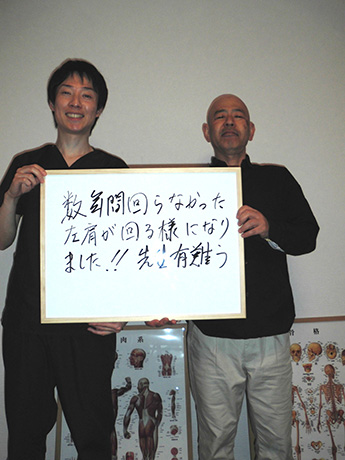 服を着替える際に痛みがありましたが、施術を受けたおかげで腕が後ろに回るようになりました。