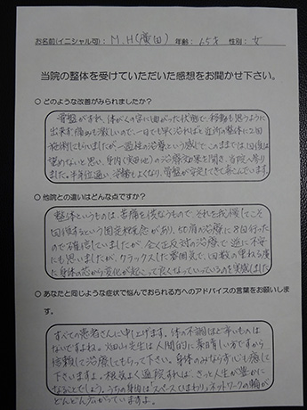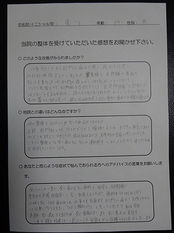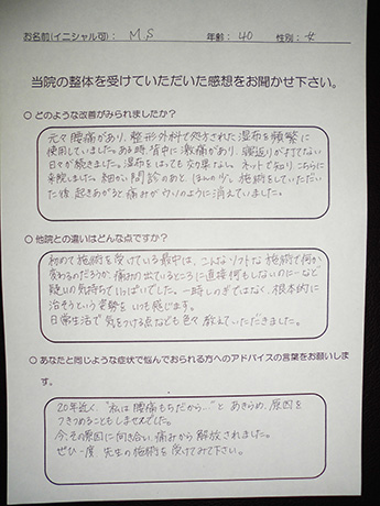 慢性的な腰痛が改善しました! H・T様 39歳 女性