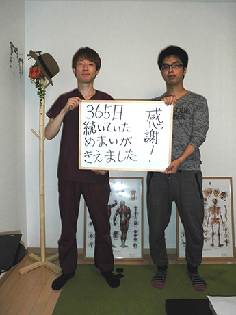 苦しみから一刻も早く別れたいとの思いからネットで当院を訪ね施術を受けました。