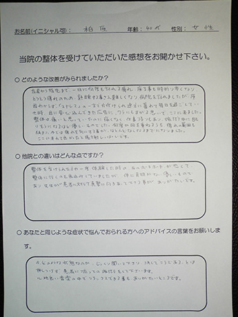 病院で原因がわからなかったシビレが改善!(頸椎ヘルニア) 柏原様 40代 女性