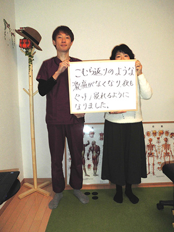 そこでネットで見つけた「ひまわり」で施術を始めたところ、最初は施術ベッドに寝て施術を受けている間に痛みを感じて同じ姿勢でいるのが辛かったのが、段々痛みがなくなってきて、私生活でも痛みを全く感じなくなりました。