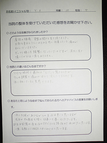 強いぎっくり腰から解放されました! R・M様 31歳 女性