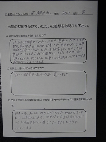 休日でも外出を控えていた程の”めまい”解放に向かっています! 室井正則様 54歳 男性